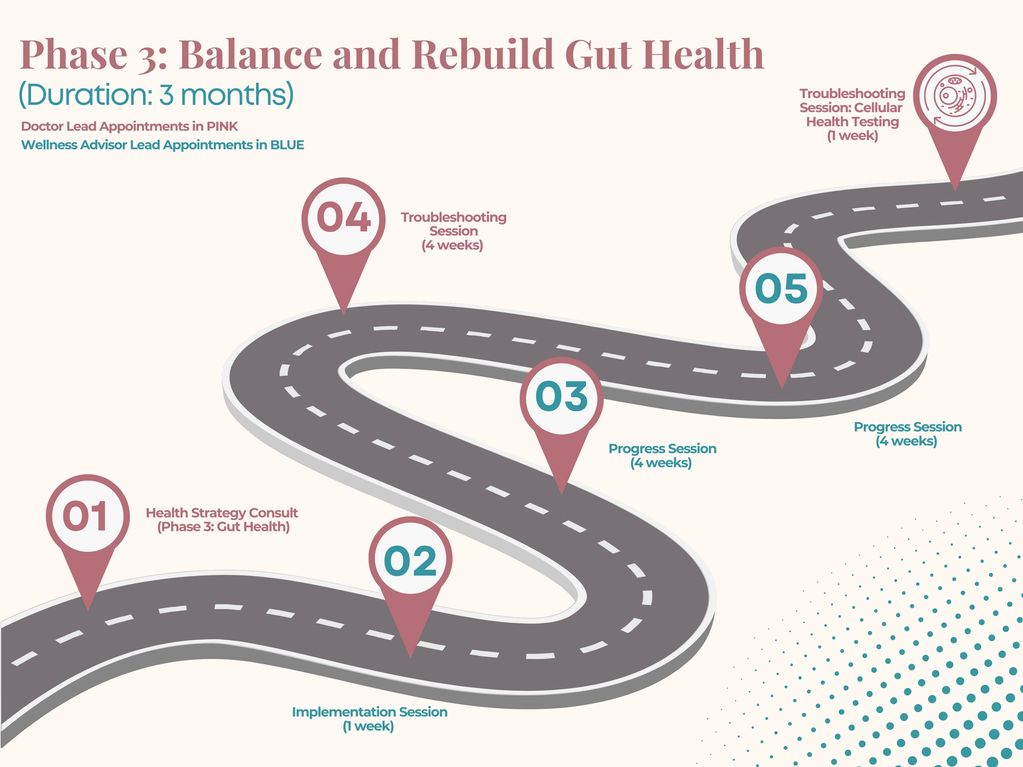 While basic gut support began in earlier phases, now we dive deeper into comprehensive gut restoration. This phase: